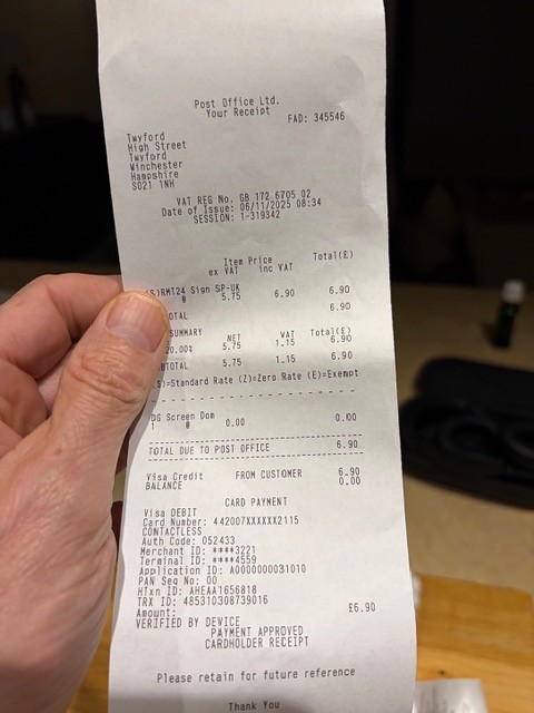 | 2025-11-06 | Postage to Hannah W | 6.90 | GBP | 7.85 |